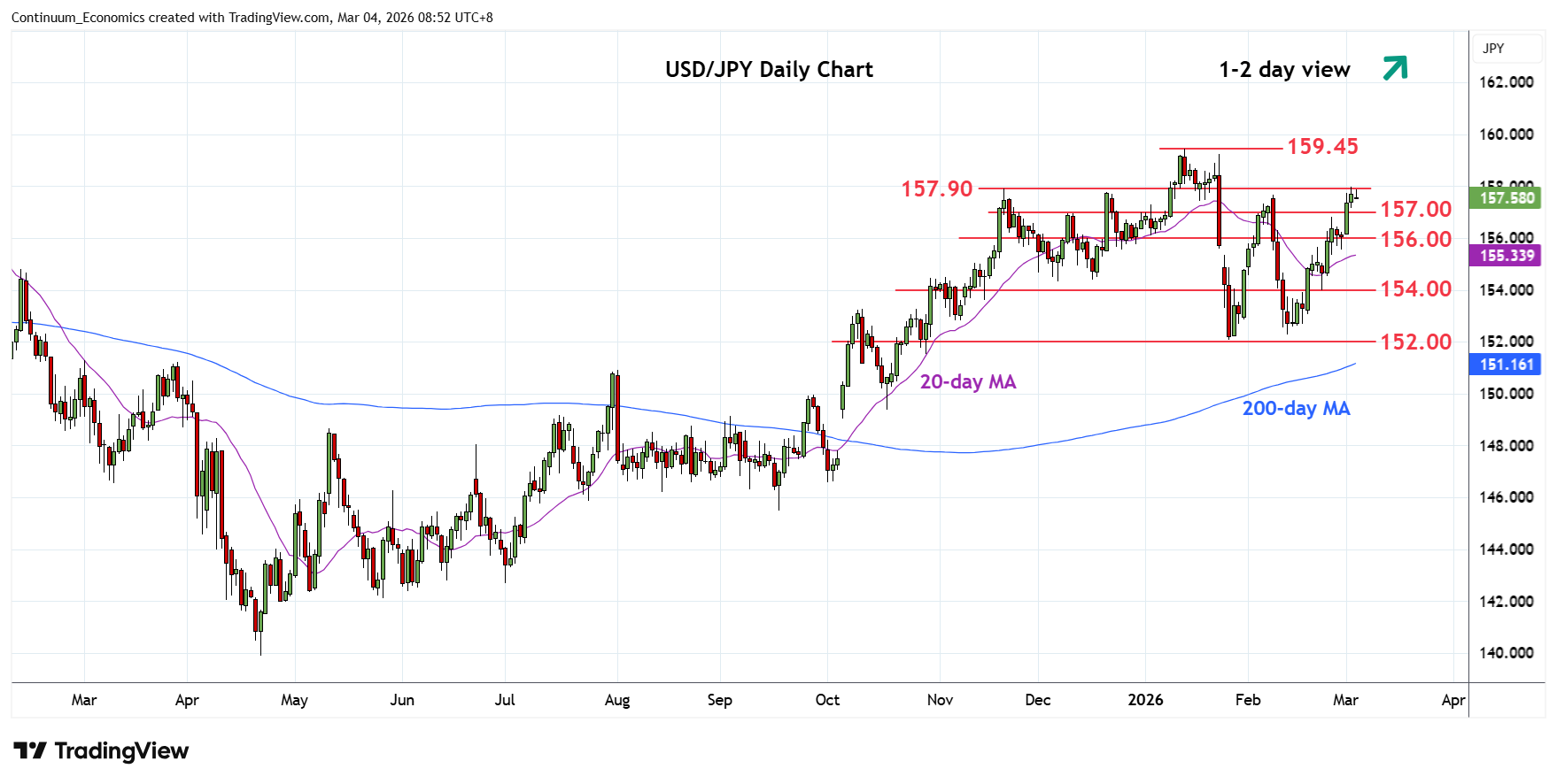 Chart USD/JPY Update: Consolidating test of 157.90/158.00 resistance