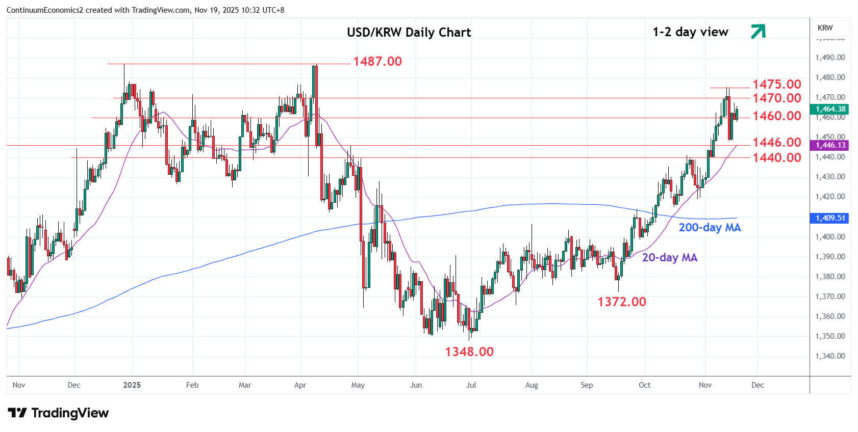 Chart USD/KRW Update: Room to extend bounce from 1448.00 low