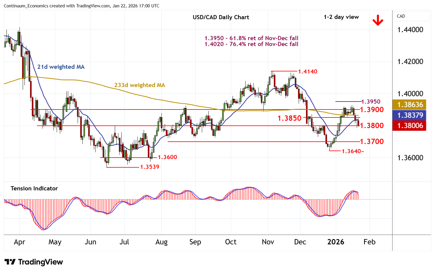 Little change, as cautious price action extends pressure on congestion support at 1.3800