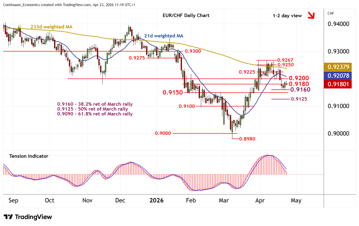 | R4 | 0.9250 | congestion | S1 | 0.9160 | * | 38.2% ret of March rally | ||