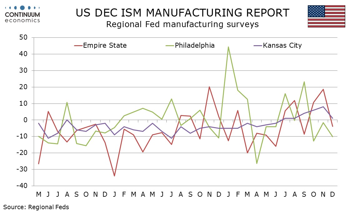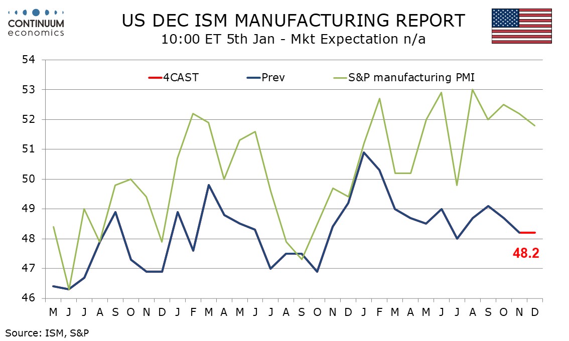 Preview: Due January 5 - U.S. December ISM Manufacturing - Stable slightly short of neutral