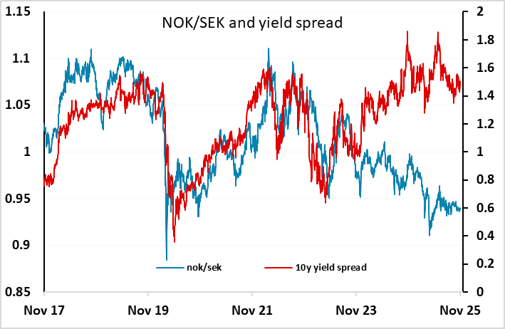 Final Swedish CPI data has often seen some significant revisions from the still quite new preliminary CPI release, so the final data isn’t quite a foregone conclusion, After the stronger numbers seen in Norway this week, the risks may be to the upside and a stronger SEK. Even though the SEK still looks to have outperformed the usual yield spread metrics this year, the gap has been narrowing, and there is still potential for SEK gains if we see any renewed speculation about potential Riksbank tightening. But in general we still see more scope for SEK weakness on neutral data, particularly against the NOK.