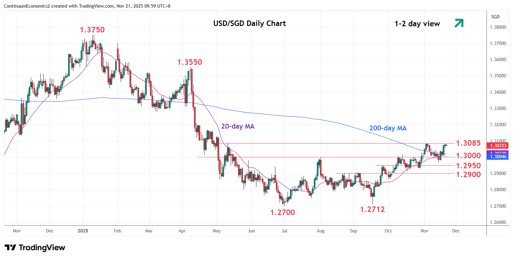 Chart USD/SGD Update: Consolidating retest of 1.3085 resistance