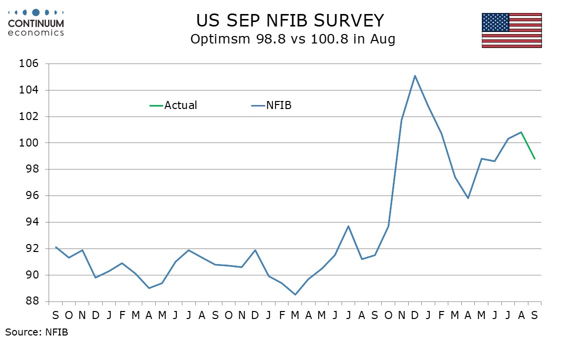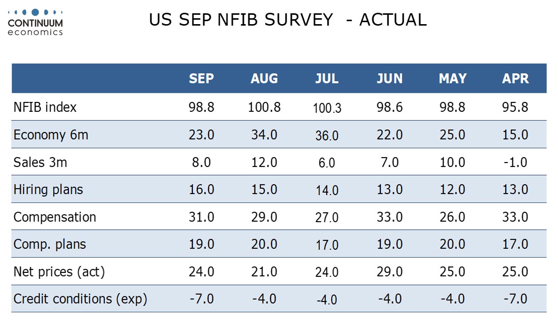 September’s NFIB index of Small Business Optimism at 98.8 from 100.8 has largely erased two straight gains though is still well above pre-election levels and above April’s 95.8 when tariff alarm was at its peak.