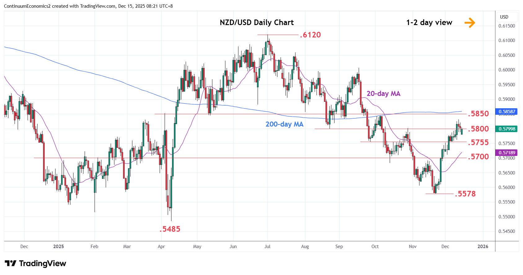 Leaning lower from the .5830 high as prices settled back in consolidation and unwind overbought daily studies