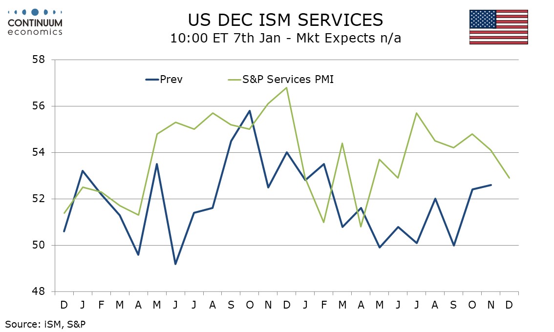 The S and P’s services index has also been outperforming the ISM’s, but December’s index is a significant break in trend and puts it not far above November’s ISM services index of 52.6, as well as reaching its weakest level since June. The Empire State released its December services index today, and it remained weak at -20.0 from -21.7. We do see risk that consumer spending could lose momentum in Q4 with Q3 spending having run well ahead of disposable income, but October retail sales were resilient outside a dip in autos.
