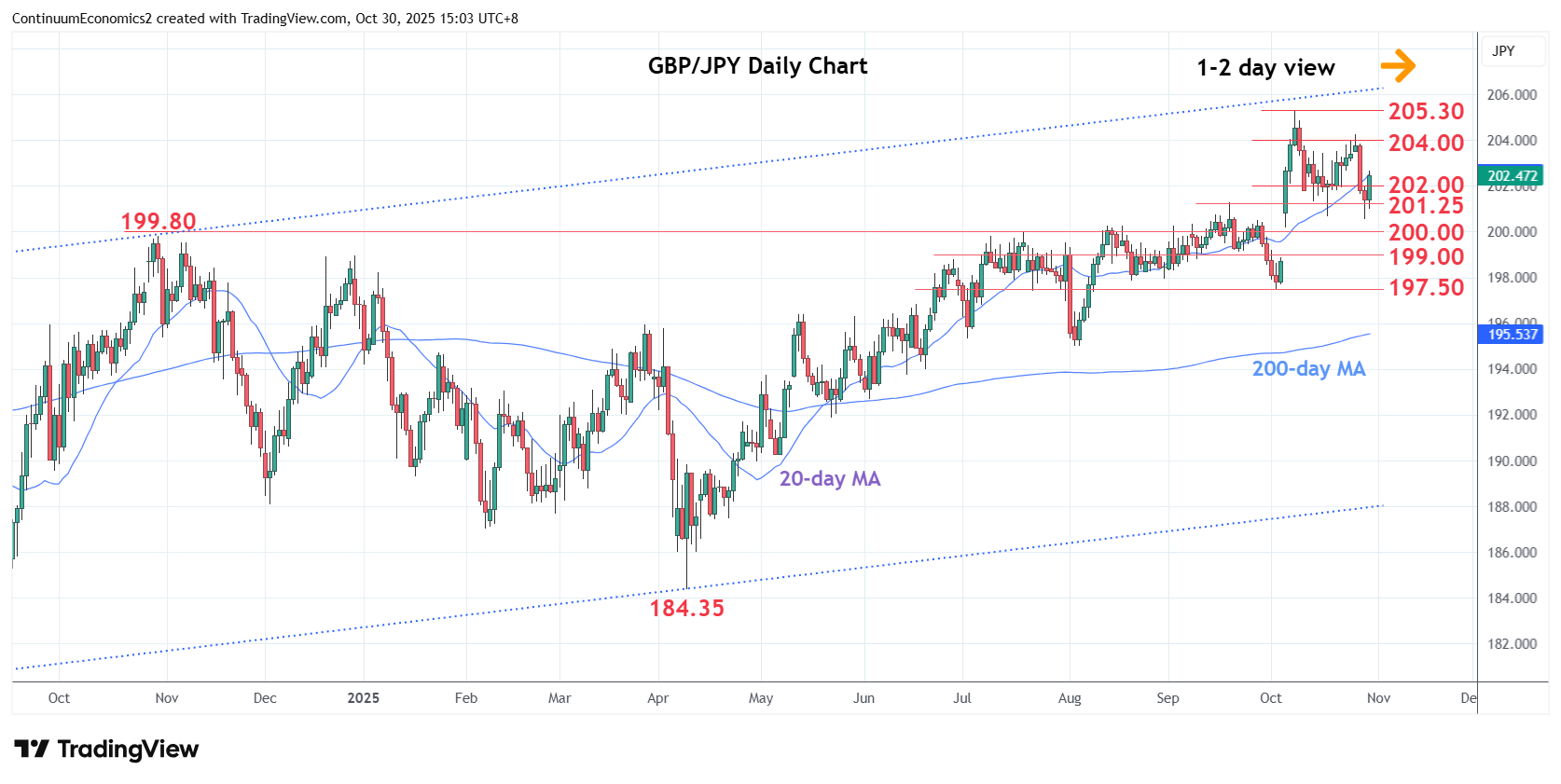 Chart GBP/JPY Update: Higher in choppy trade above 201.25 support