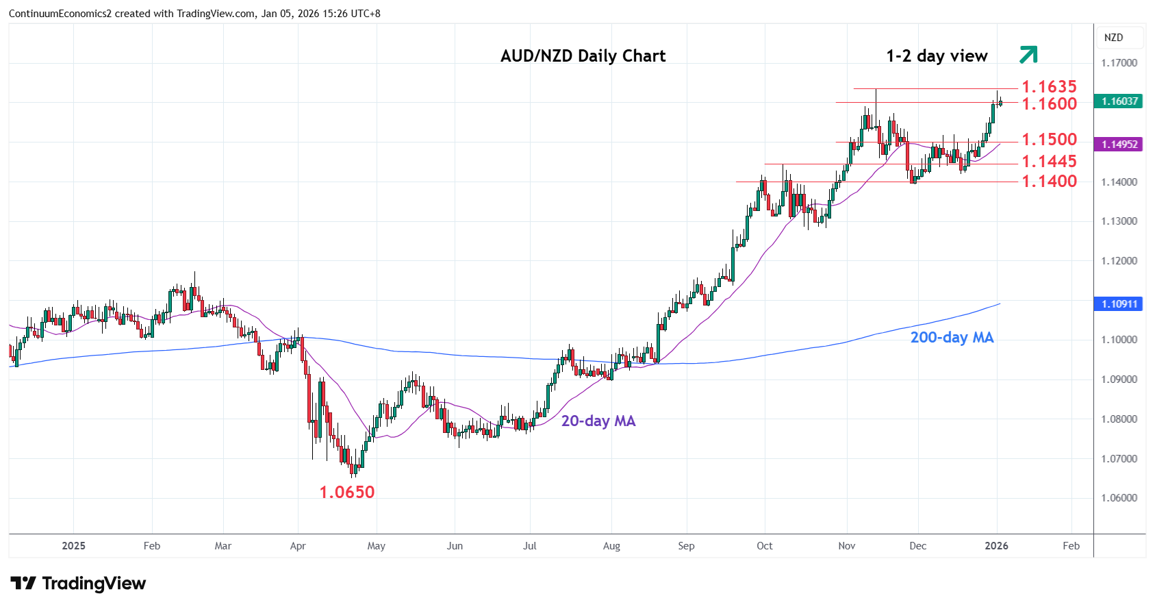 Chart AUD/NZD Update: Consolidating retest of 1.1635 high