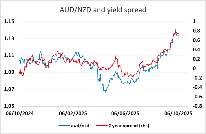 The RBNZ meeting looks like the main event for Wednesday. All forecasters expect a rate cut, but are split on the likely size, with 15 of 26 in the Reuters survey going for a 25bp cut and 11 looking for 50bps. Market pricing suggests it is close to a 50-50 call between 50 and 25. While it is a close call, we would expect a 25bp cut which might allow a modest NZD recovery. AUD/NZD has been in a strong uptrend for the last couple of months as the market has priced in relatively more aggressive RBNZ easing, and the NZD could manage a fairly sharp corrective rally if the RBNZ proves less dovish than expected.