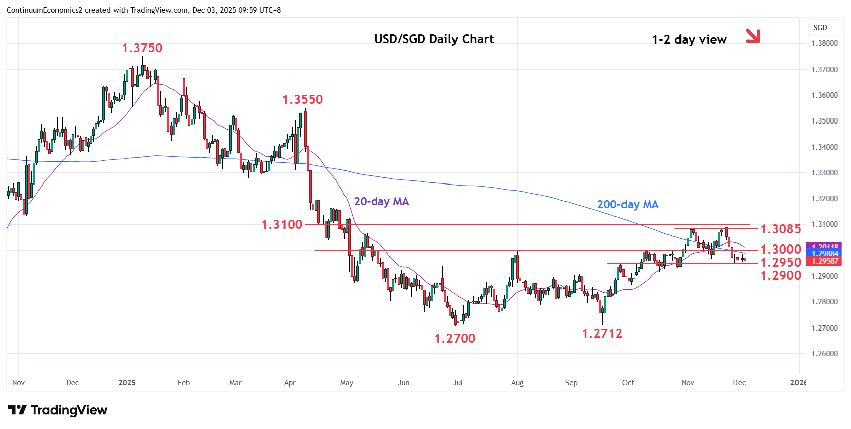 Little change, as prices holds steady above the 1.2950 support following bounce from the 1.2932, Monday's low