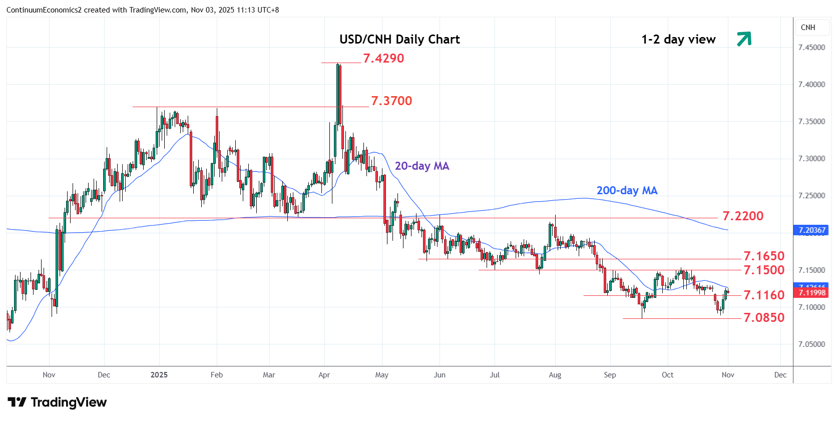 | R2 | 7.1500/35 | ** | congestion, Oct high | S3 | 7.0885 | * | 29 Oct low | |