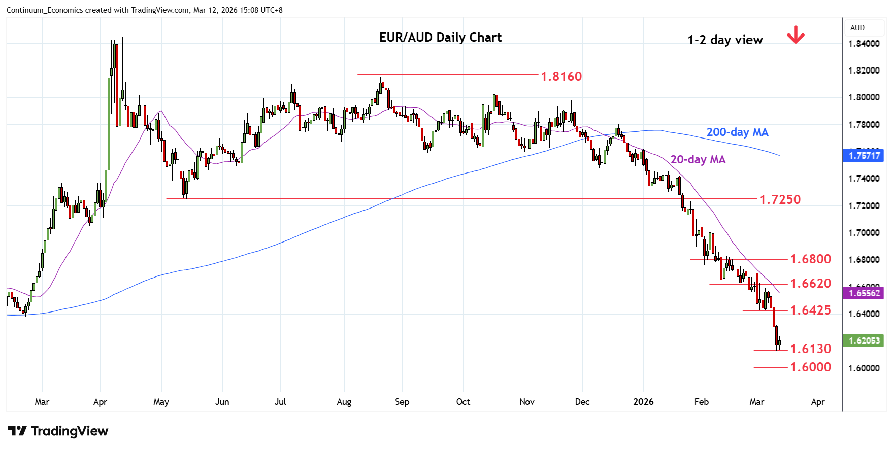 Chart EUR/AUD Update: Consolidating at 1.6130, but room for further losses