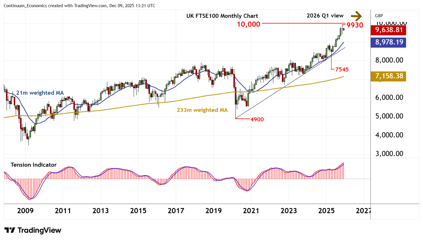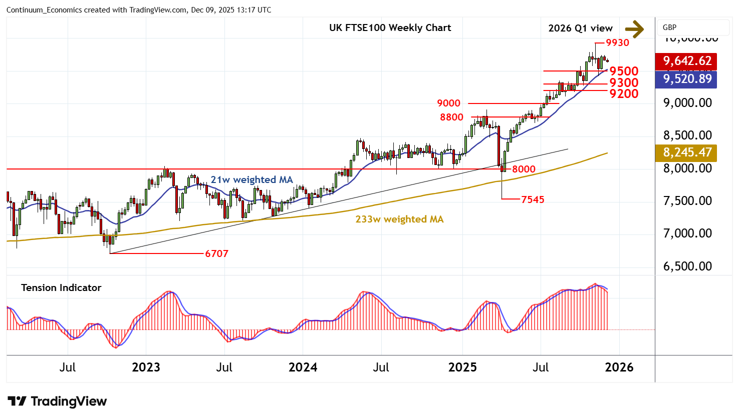 Chartbook: UK Chart FTSE 100 Update: Cautious trade beneath fresh highs - background remains positive
