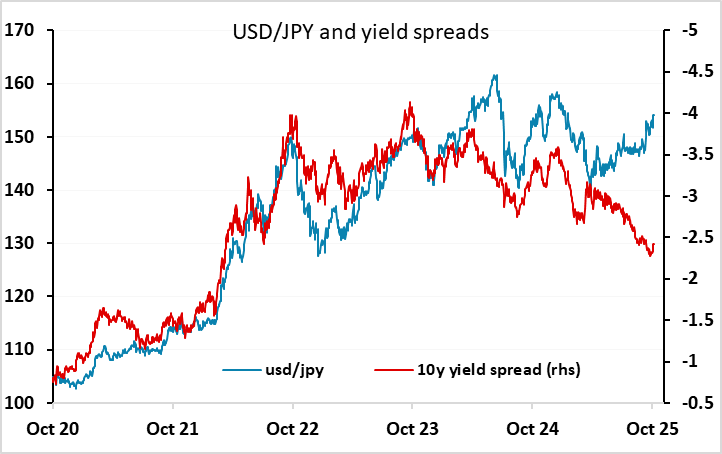 There isn’t much else on Monday’s calendar that looks likely to move markets. Japanese markets were closed for culture day which looks to have limited JPY volatility. Comments last week from new Japanese finance minister Katayama suggested that the new administration isn’t looking for a weaker JPY, but equally they haven’t shown a willingness to intervene to prevent further weakness thus far. JPY weakness continues to move with equity strength, particularly on the crosses, but on all other metrics looks overdone – with yield spreads and equity risk premia pointing to a much higher JPY.