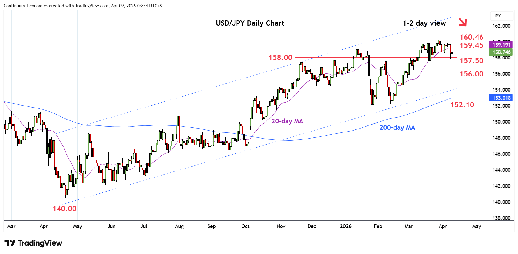 | R4 | 160.46 | ** | 30 Mar YTD high | S1 | 158.27/00 | ** | 1 Apr low, congestion | |