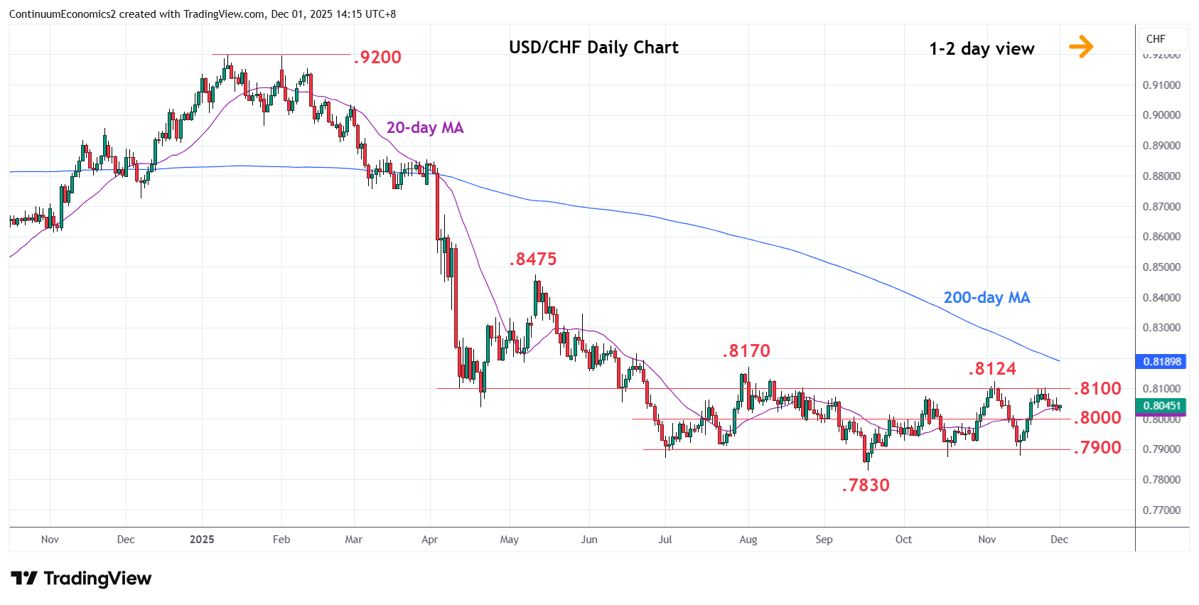 Chart USD/CHF Update: Lower in consolidation from .8100 range high