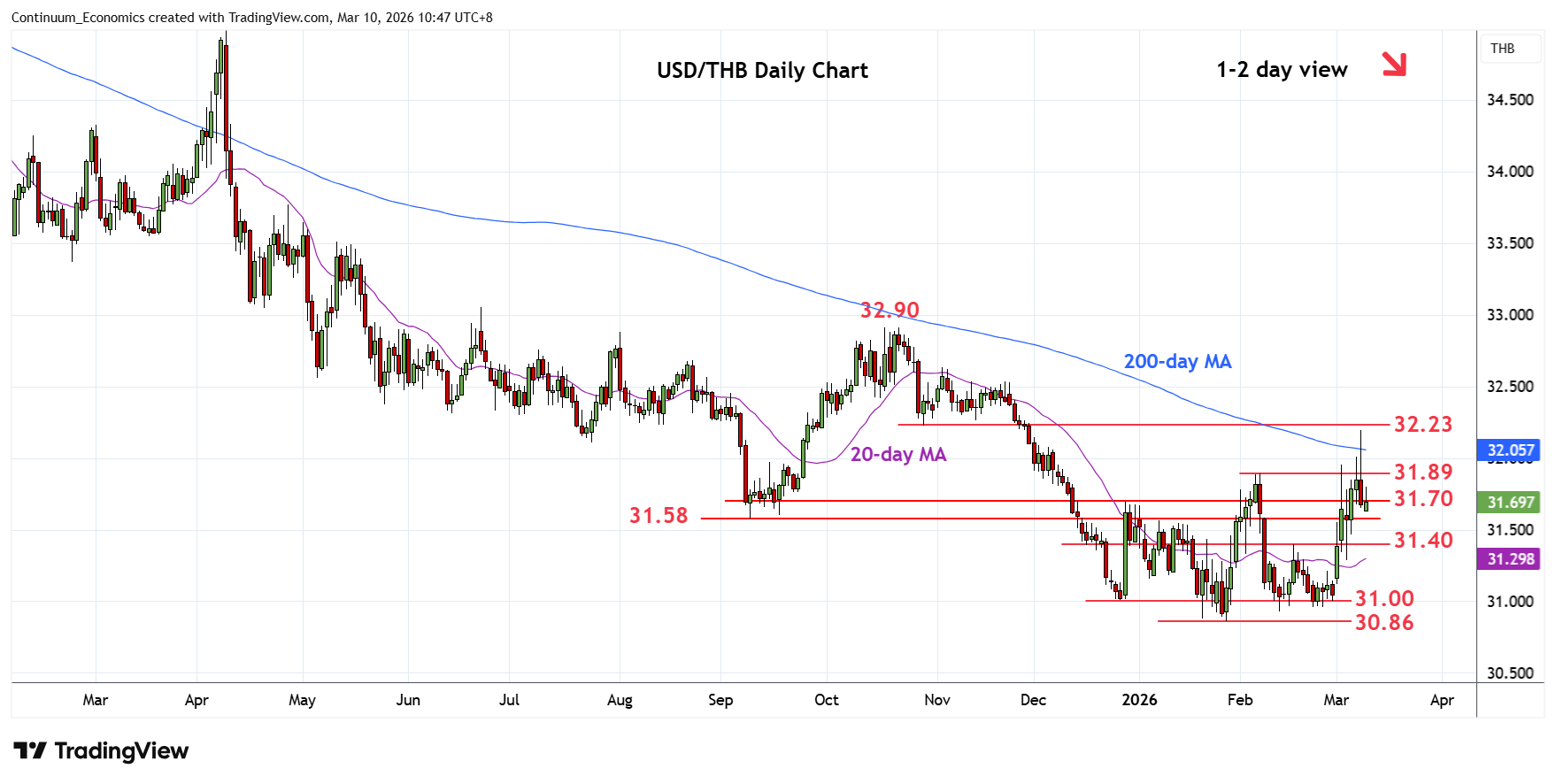 Chart USD/THB Update: Reversing gains from the February low