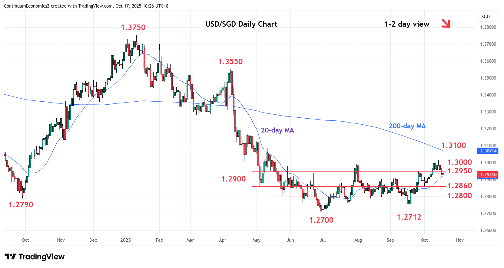 Chart USD/SGD Update: Under pressure, room to 1.2600/1.2860 support