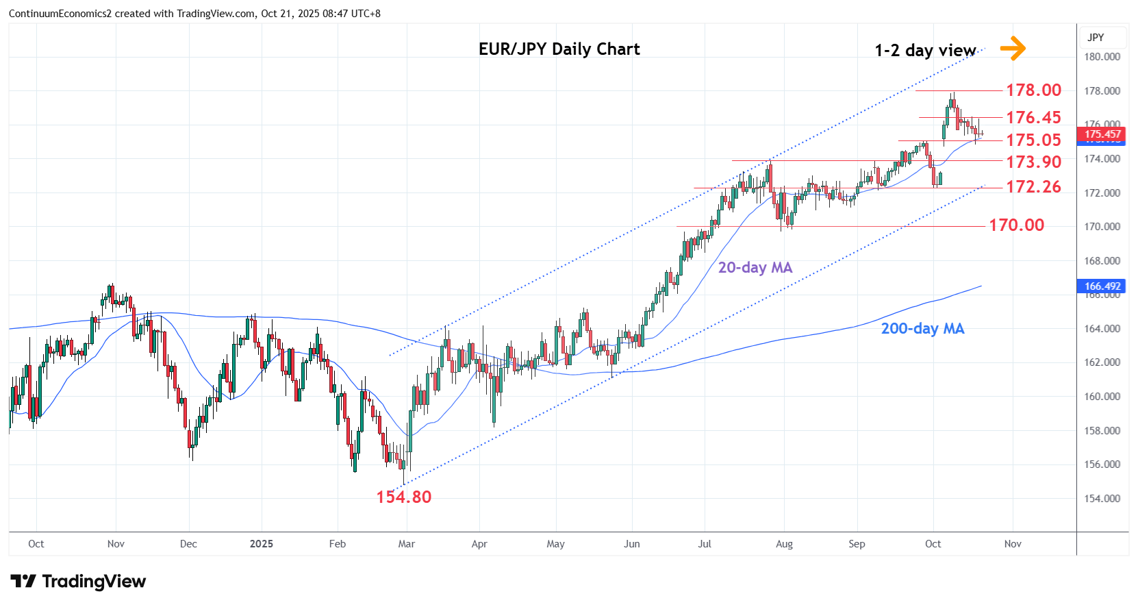 Chart EUR/JPY Update: Extend consolidation above 175.05/174.71 support