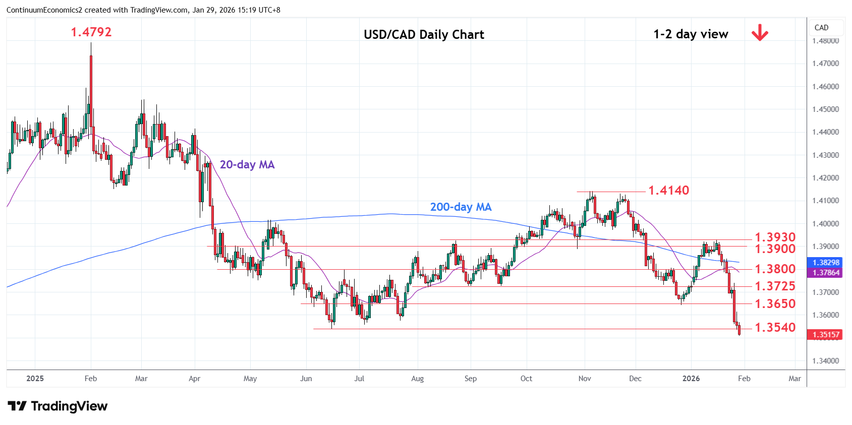 Break of the June 2025 year low at 1.3540 see prices extending the broader losses from the February 2025 year high