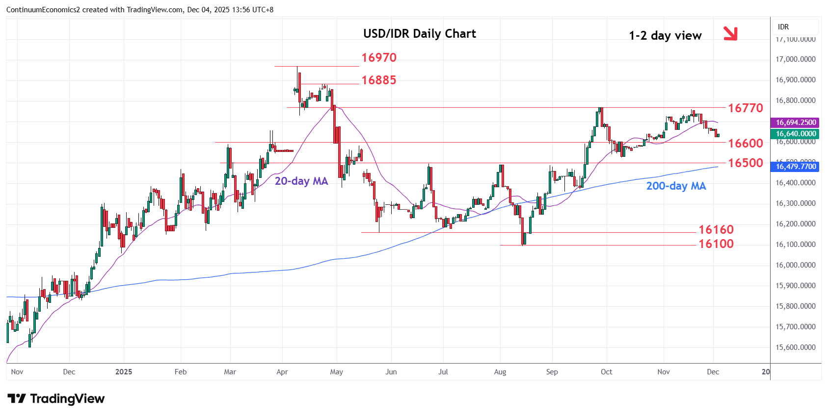 Chart USD/IDR Updates: Extending pullback from 16760, November high