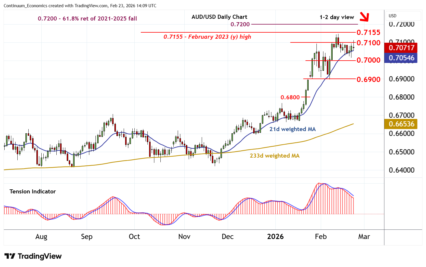 | R2 | 0.7147/55~ | ** | 12 Feb YTD high; Feb 2023 (y) high | S3 | 0.6800 | break level | ||