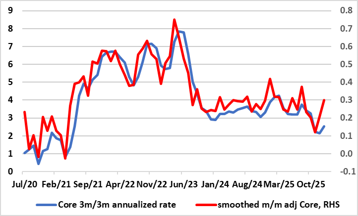 Partly this reflects nothing more than an extension of what recent adjusted m/m data have been suggesting with core rates on this basis already consistent with the 2% target (Figure 2).