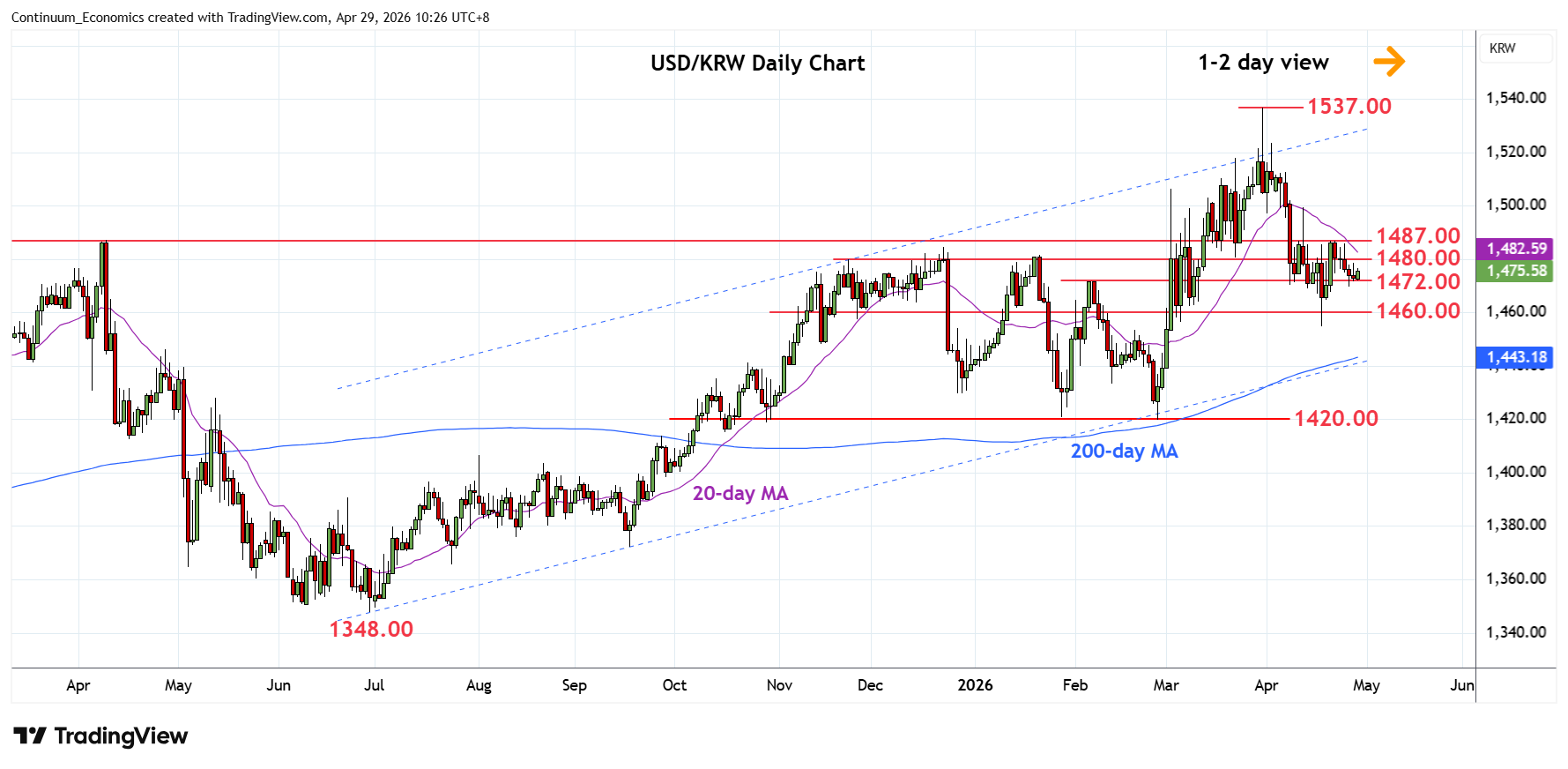 Chart USD/KRW Update: Steadied at 1472.00 support, room for lower later