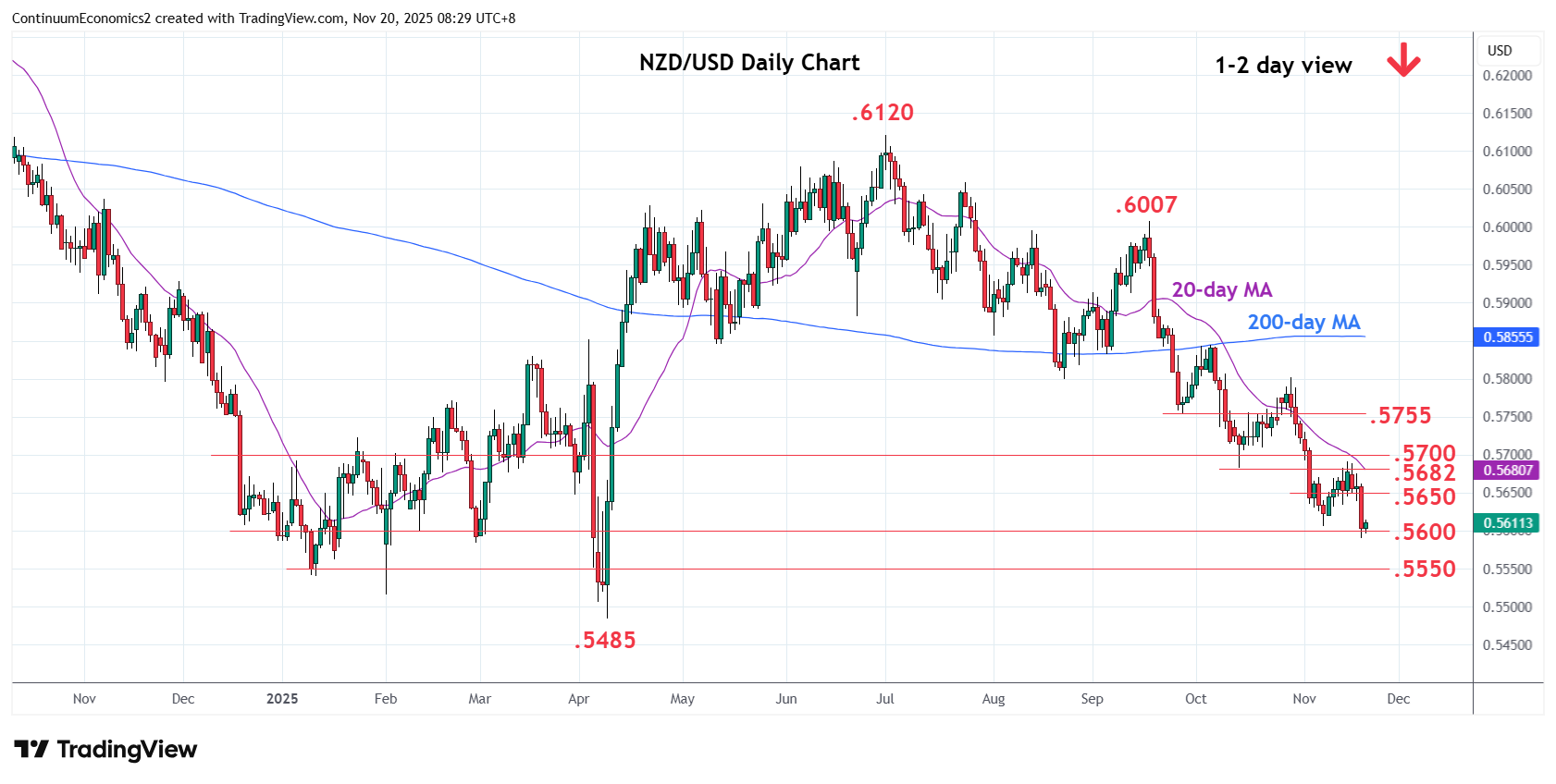 Chart NZD/USD Update: Under pressure, room to extend losses