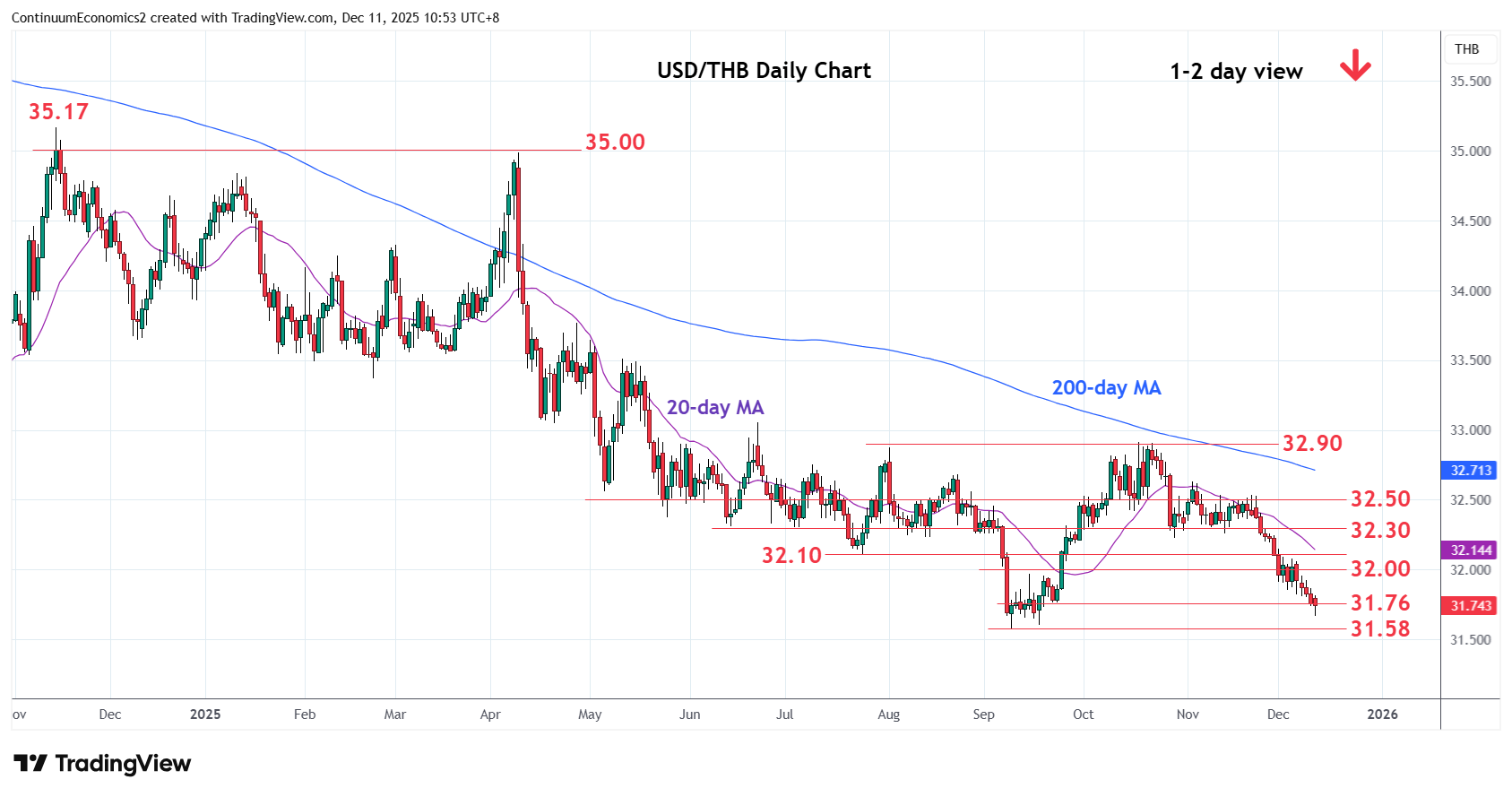 Chart USD/THB Update: Within reach of 31.58, September YTD low