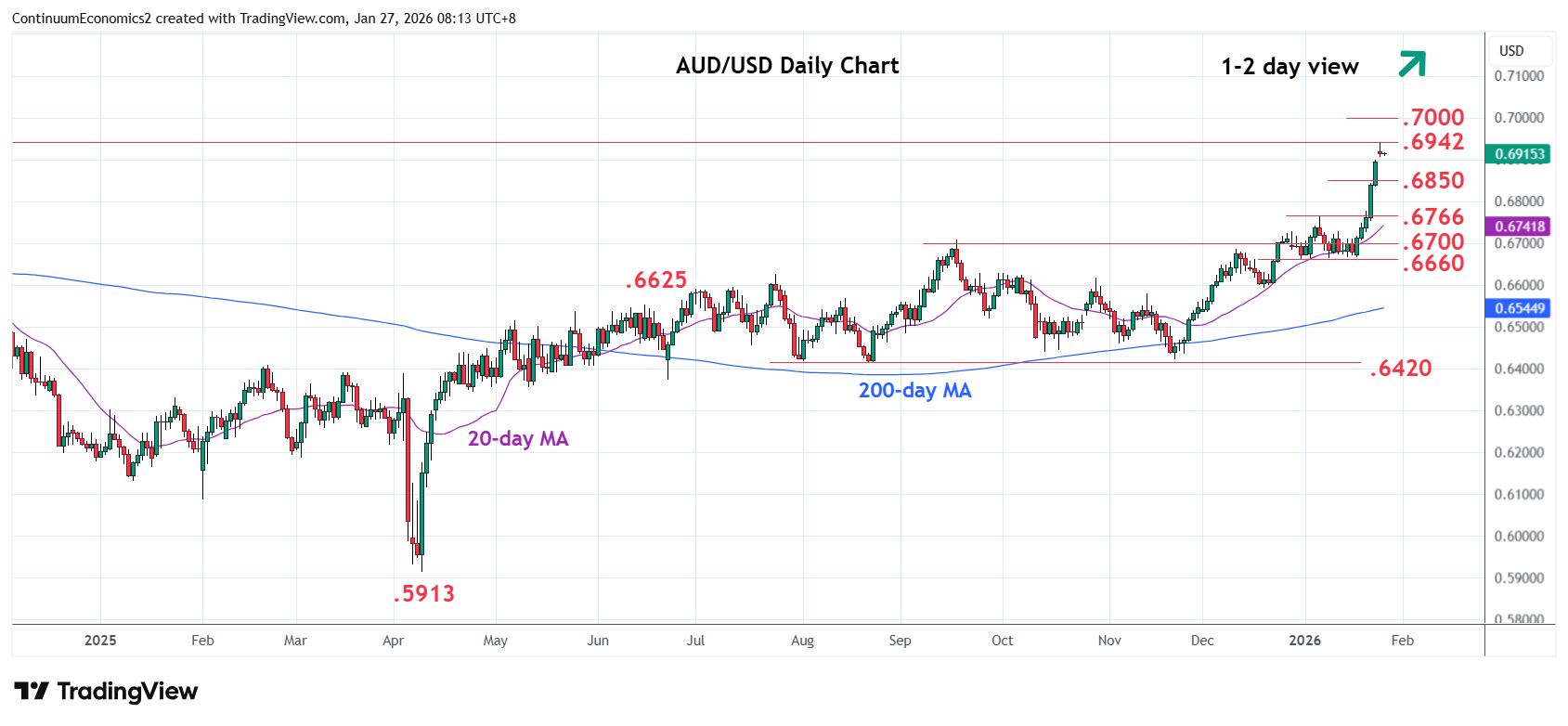 Chart AUD/USD Update: Consolidating test of .6942, 2024 year high