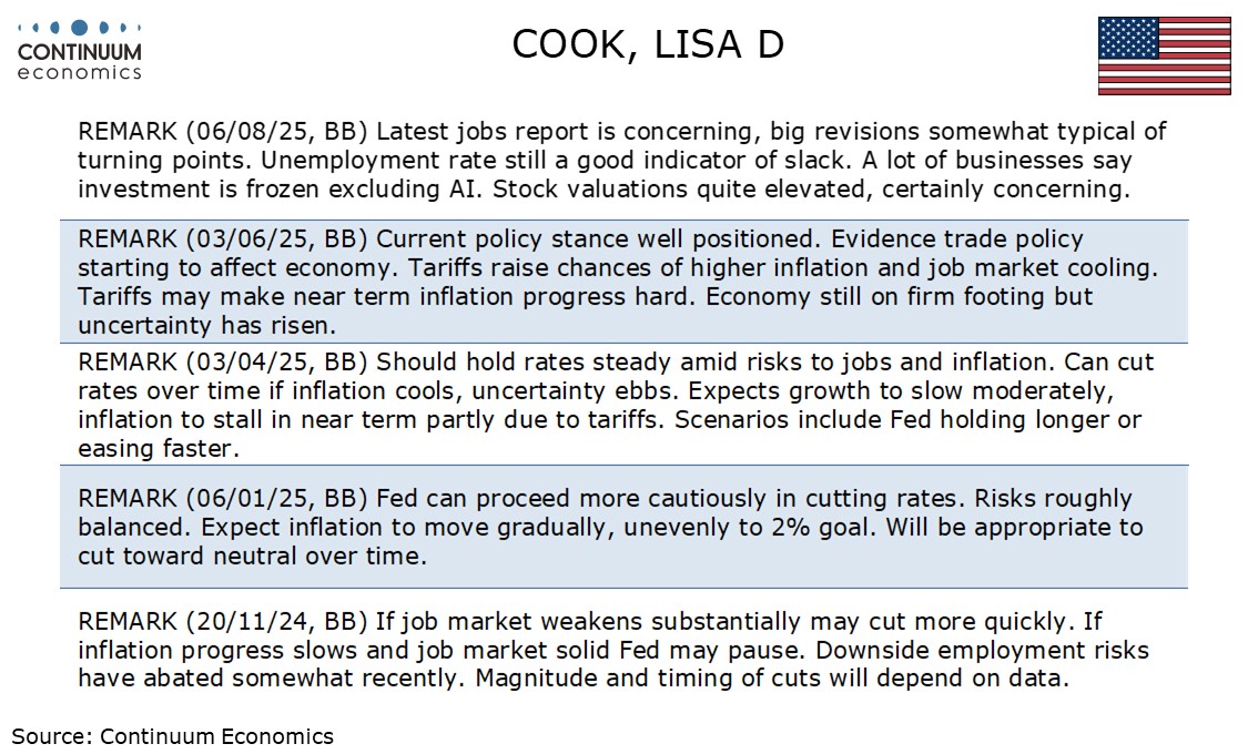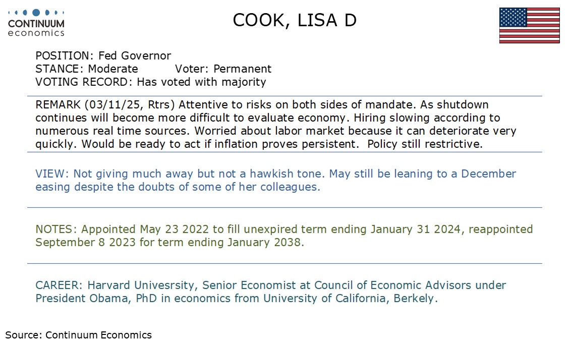 Fed's Cook is giving little away but may still be leaning towards further easing in December.