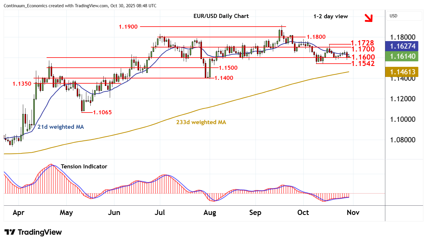 Eurozone Q3 GDP data will be released at 10GMT, and risks are to the upside of the 0.1% q/q consensus after the 0.5% from France and 0.6% from Spain, in spite of flat numbers from Italy and Germany this morning. The German state CPI data released this morning looks broadly consistent with the consensus expectation of a small drop in the y/y rate in the national data to 2.2% (HICP basis). In practice the data is unlikely to influence the ECB, and shouldn’t have much market impact, but may be mildly EUR supportive. The EUR has held its own against a stronger USD post-FOMC, and made new all-time highs against the JPY. EUR/JPY strength continues to look to be driven mostly by equity market strength, although the mildly dovish stance from the BoJ overnight has also undermined JPY sentiment.