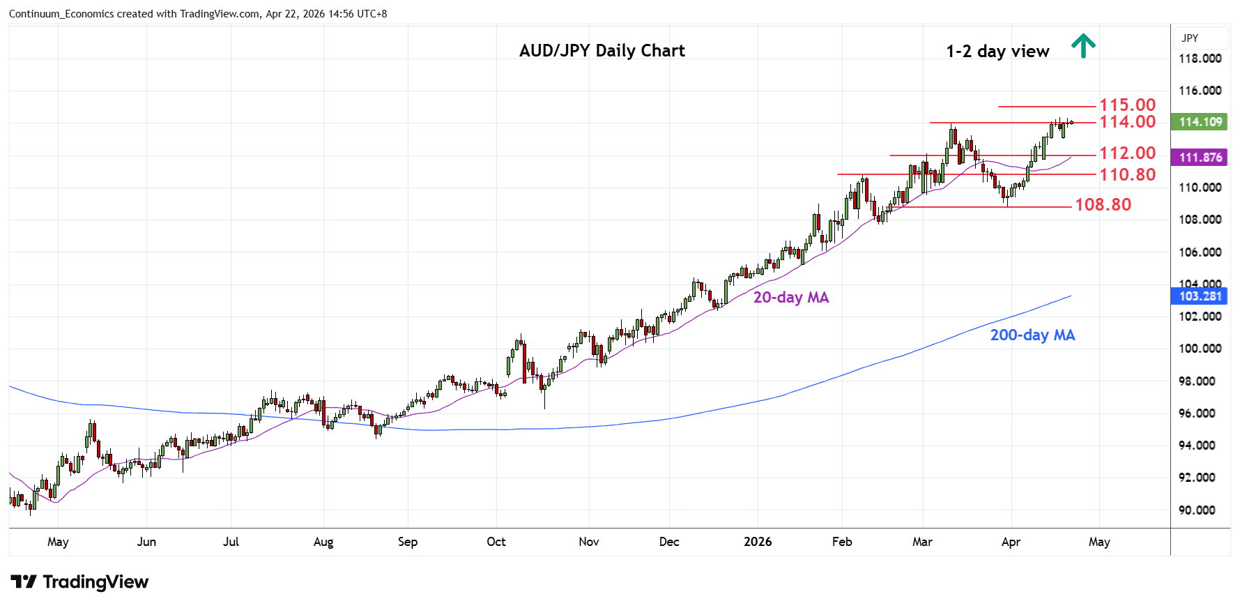 | R1 | 114.35 | ** | 17 Apr YTD high | S4 | 108.80 | ** | Mar low |