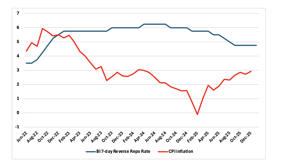 Bank Indonesia kept its benchmark interest rate unchanged at 4.75% during its January Board of Governors meeting, marking the fourth consecutive hold amid mounting exchange rate pressures and growing market concerns over central bank independence. The decision came as the Indonesian rupiah (IDR) weakened by over 1.5% since late December, prompting a prioritisation of currency stability over further easing even as signs of a domestic growth slowdown persist.