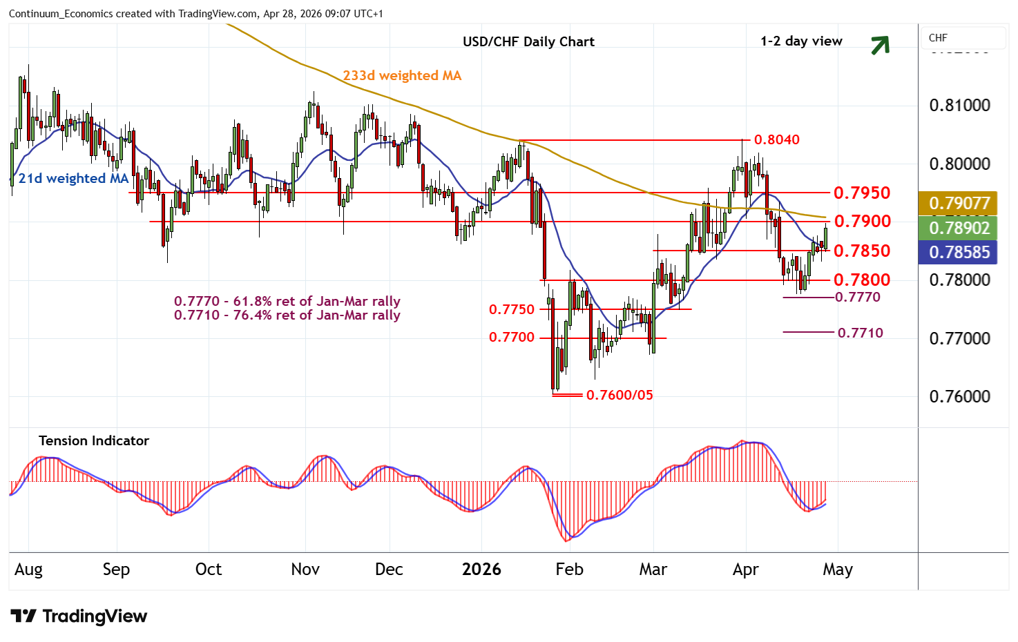 | R2 | 0.7950 | * | congestion | S3 | 0.7770 | ** | 61.8% ret of Jan-Mar rally | |