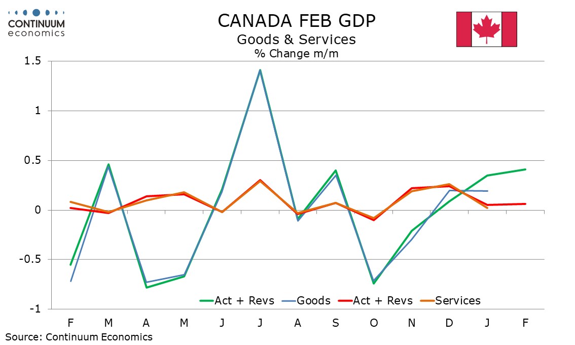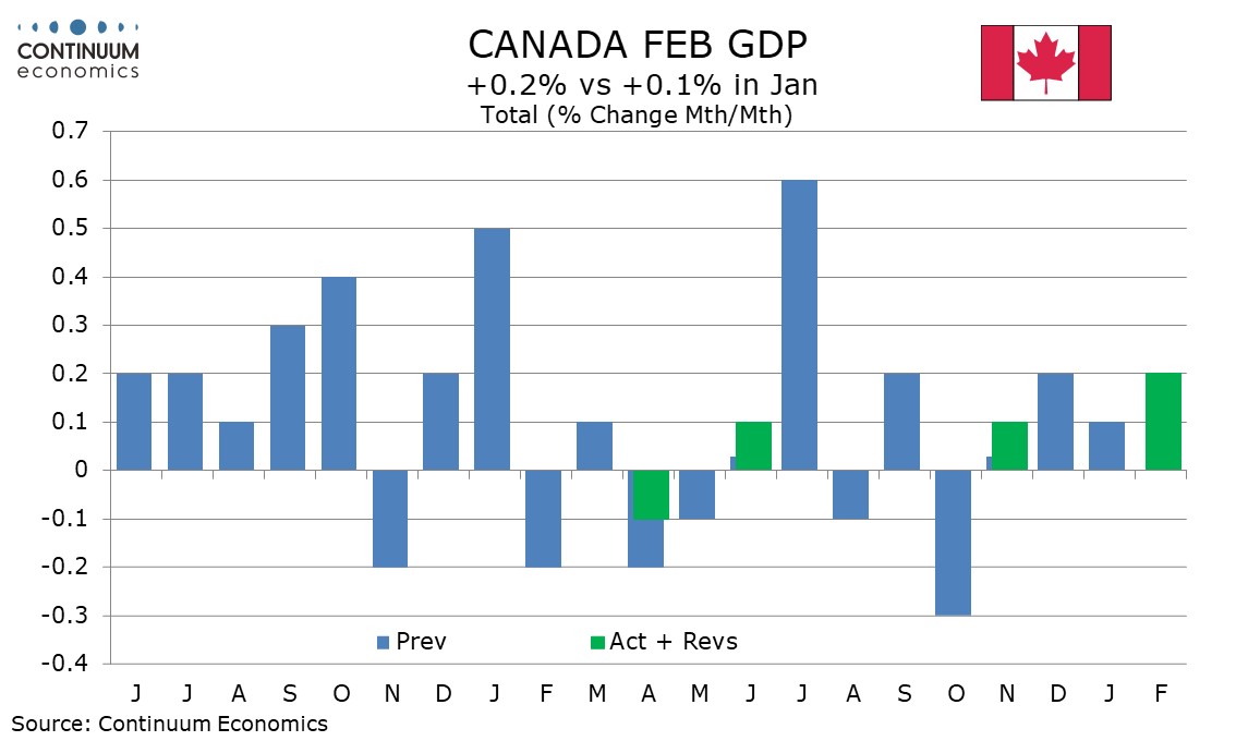 Canada February GDP - Q1 looking in line with BoC forecast