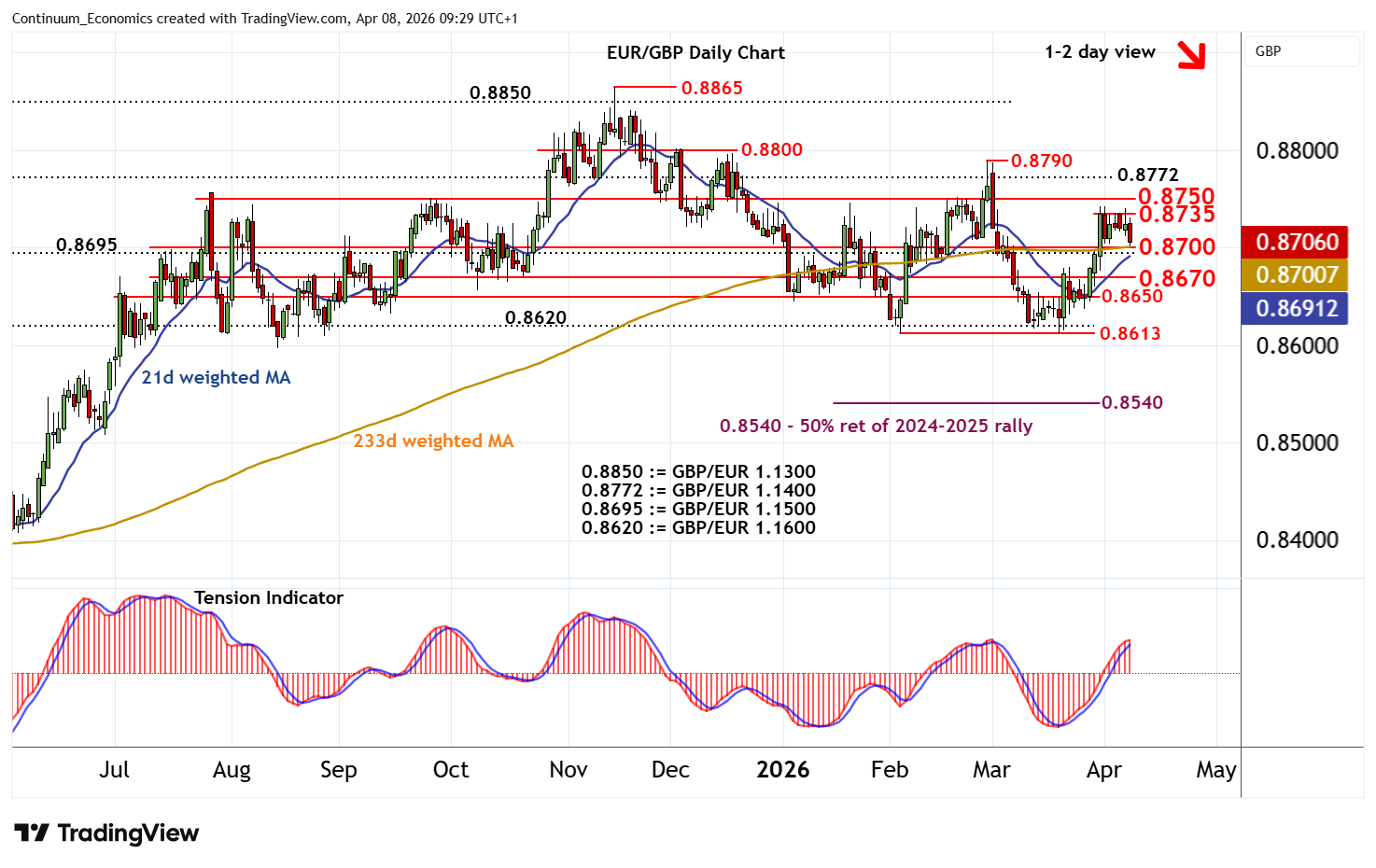 | R3 | 0.8772 | * | GBP/EUR 1.1400 | S2 | 0.8670 | * | congestion | |