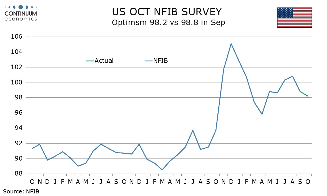 October’s NFIB index of Small Business Optimism at 98.2 from 98.8 has seen a second straight decline, possibly influenced by the government shutdown which looks close to being resolved. The index is still well above pre-election levels and above April’s 95.8 when tariff alarm was at its peak.