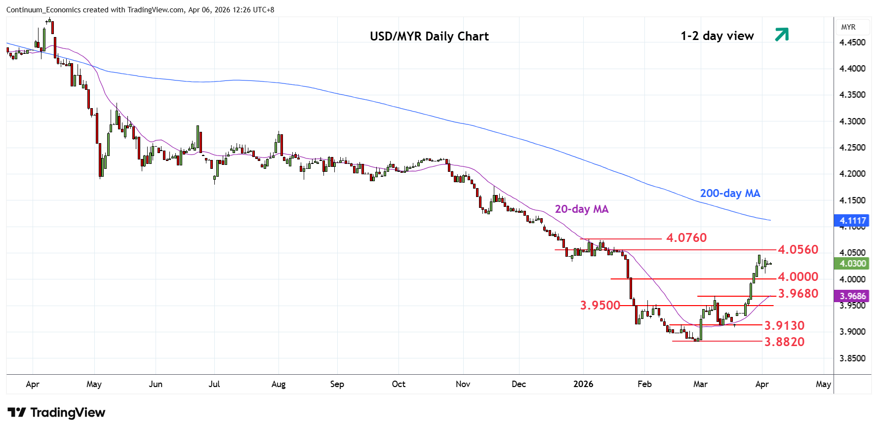 Chart USD/MYR Update: Extend consolidation beneath 4.0500