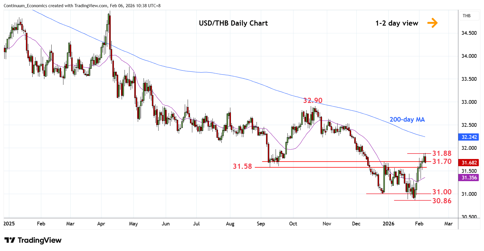 Chart USD/THB Update: Settled back from 31.88, Fibonacci level
