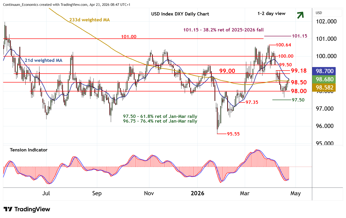 | R2 | 99.50 | * | congestion | S3 | 97.63 | 17 Apr (w) low | ||