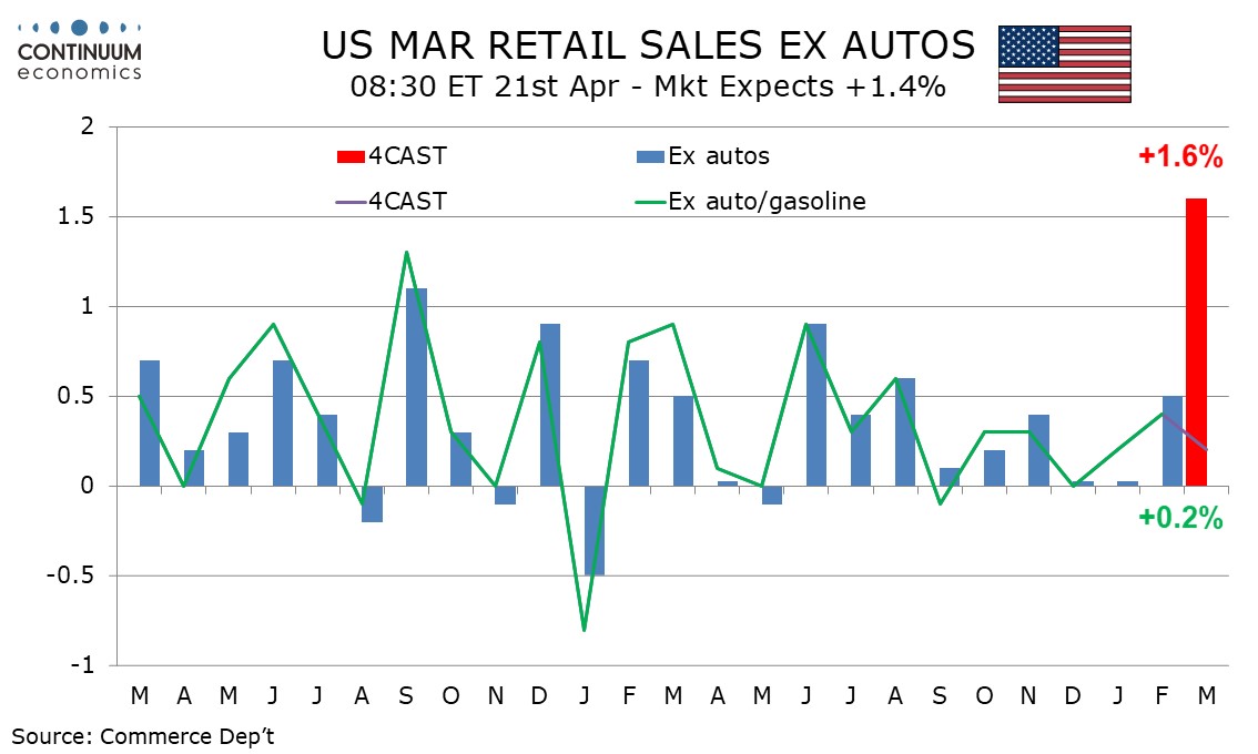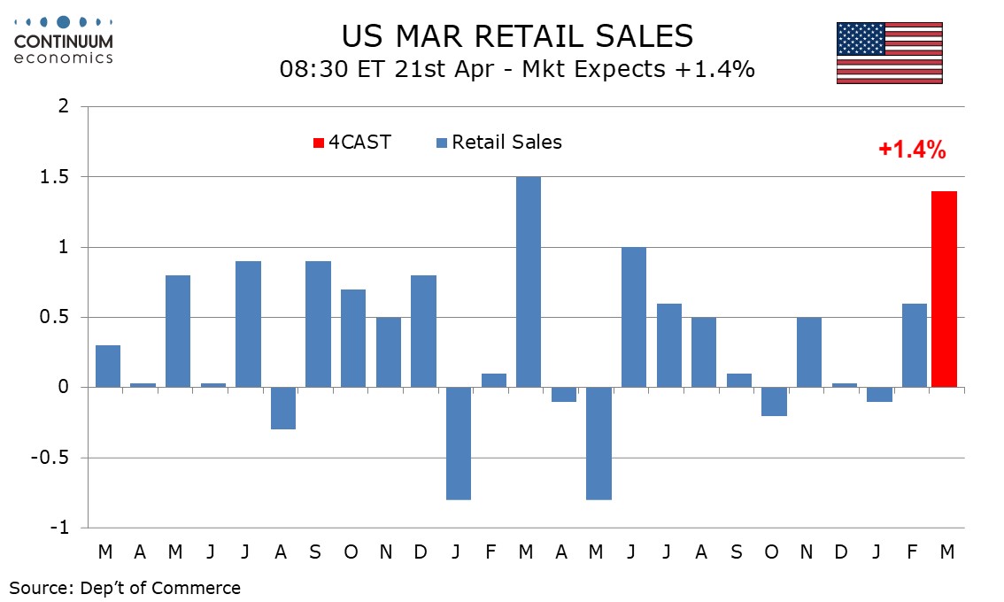 Preview: Due April 21 - U.S. March Retail Sales - Surge on gasoline prices, underlying trend subdued