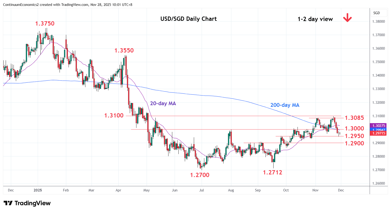 02:10 GMT - Steadied at the 1.2950 support as prices consolidate pullback from the 1.3100 resistance and unwind oversold intraday studies. Daily and weekly studies continue to track lower and highlight scope for break here to further retrace gains from the 1.2712, September low. Lower will see room for extension to strong support at the 1.2917 support and 1.2900 congestion. Meanwhile, resistance at the 1.3000 level and August high now expected to cap and sustain pullback from the 1.3085/1.3100 resistance.