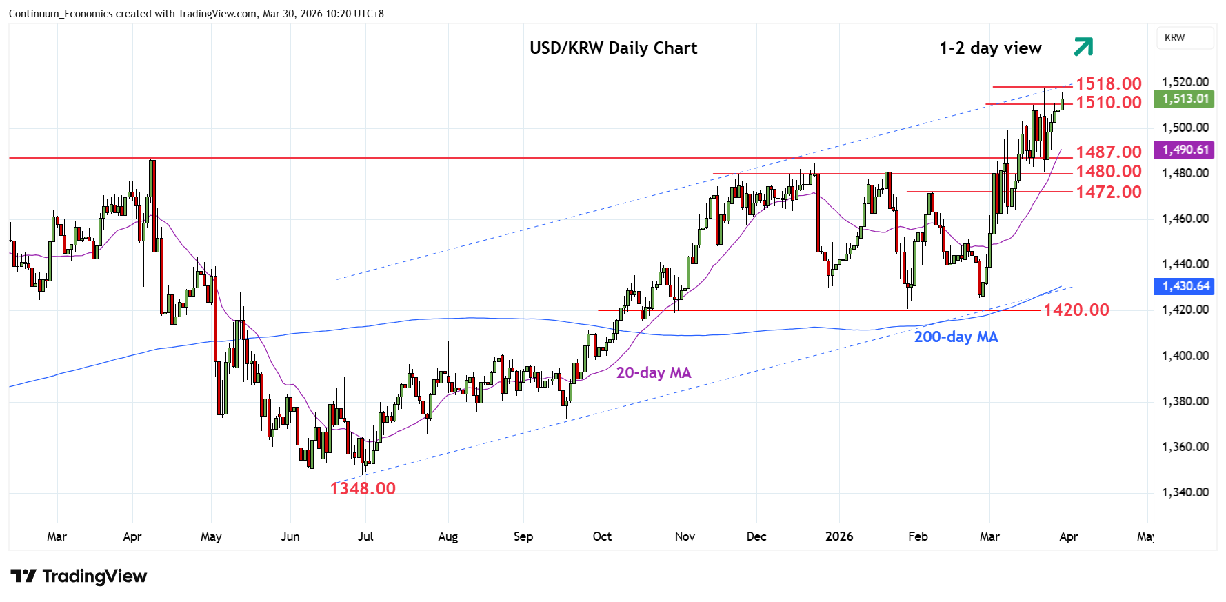 Chart USD/KRW Update: Strong resistance at 1518.00 high
