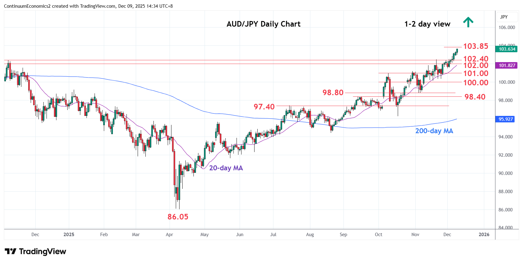 06:40 GMT - Extending break of the 102.00/40 resistance to reach fresh year high above the 103.00 congestion. Higher see room to further retrace losses from the July 2024 year high to target 103.85, 76.4% Fibonacci level. Break here, if seen, will open up room to the 104.50/105.00 congestion and the April 2024 high. Meanwhile, support is raised to the 103.00 congestion which extend to the 102.40/00 congestion area. This area should now underpin and only below this will fade the upside pressure and see room for deeper pullback to the 101.20/00 October highs.