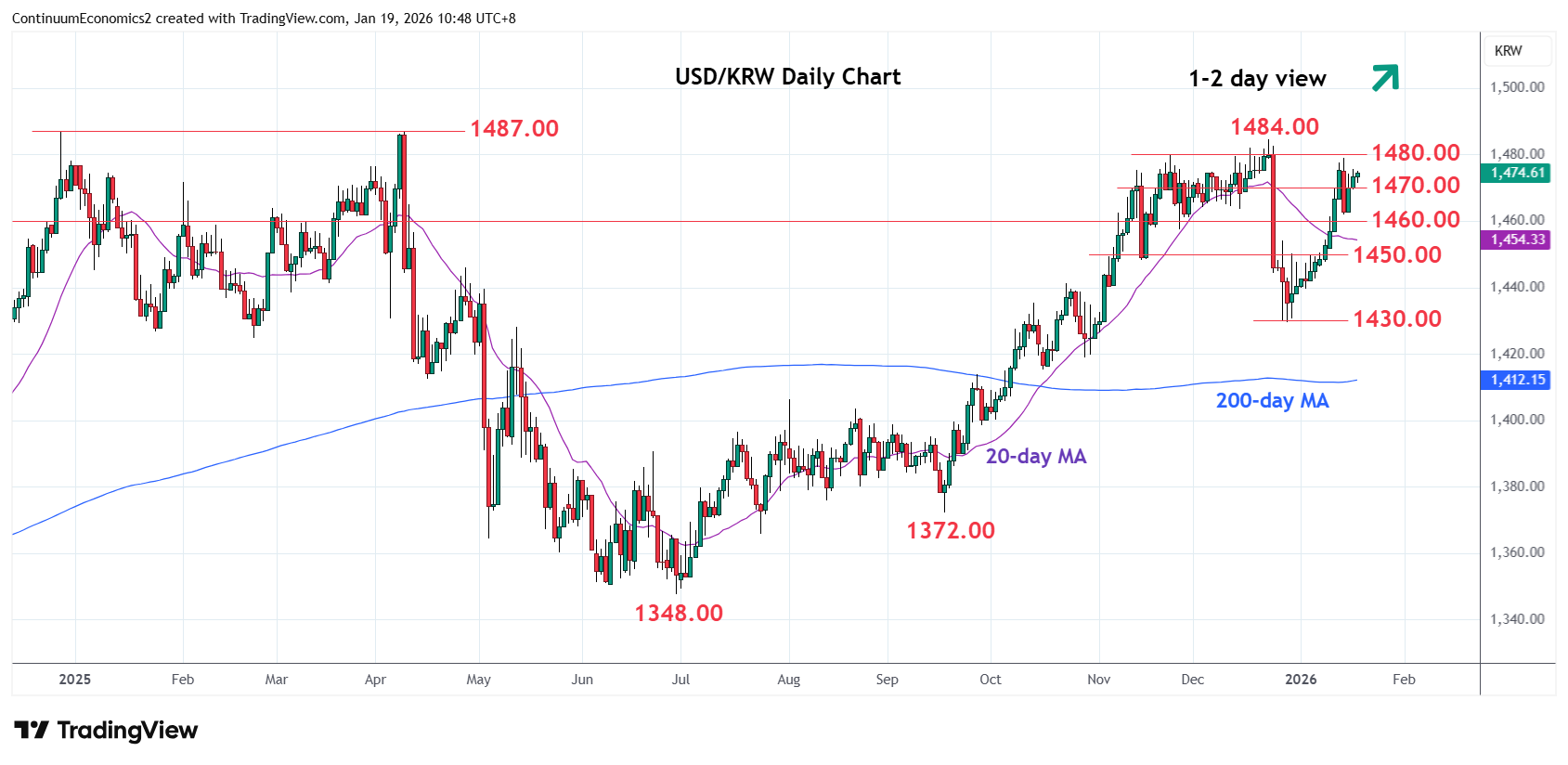 Chart USD/KRW Update: Higher in consolidation, scope to retest 1480.00/1484.00 highs
