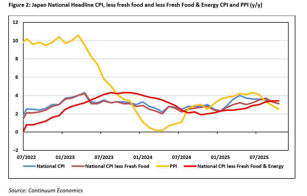 The BoJ’s rhetoric on more tightening if economic forecast align with a 2% sustained inflation trajectory has not changed. With a supportive inflationary picture, we see the BoJ to further hike rates by 25bps to 1% in H1 2026. Political headwinds, will only stall, but are unlikely to force the BoJ to go on hold as long as wage/inflation figure aligns with their forecast. For the BoJ to move further from 1%, we will need to see swift adaption of higher price/wage from both Japanese consumers and SMEs owners, which is not in our central forecast’s scenario.
