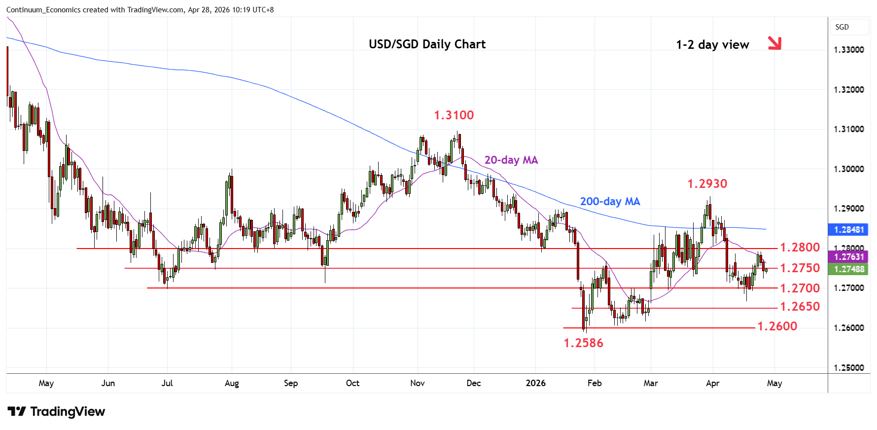 Chart USD/SGD Update: Room to extend pullback from 1.2793 high