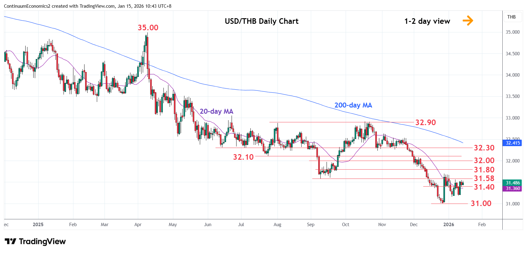 Chart USD/THB Update: Higher in choppy trade from 31.00/31.16 lows